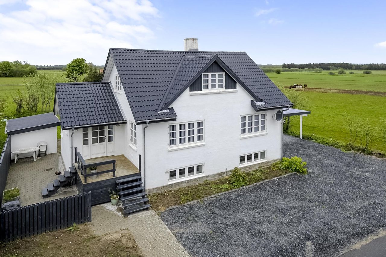 DORF KIRKEBY / KVISSELHOLTVEJ 7 - Elegant og spændende 1½ plans villa med fuld kælder og stor carport/værksted. Huset er moderniseret i 2013.